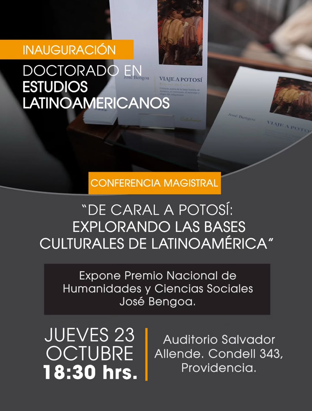 El Doctorado en Estudios Latinoamericano tiene el agrado de invitar a la comunidad universitaria y al público general a la inauguración de su año académico con la conferencia magistral “De Caral a Potosí: explorando las bases culturales de Latinoamérica” que dictará el Premio Nacional de Humanidades y Ciencias Sociales 2025, José Bengoa.