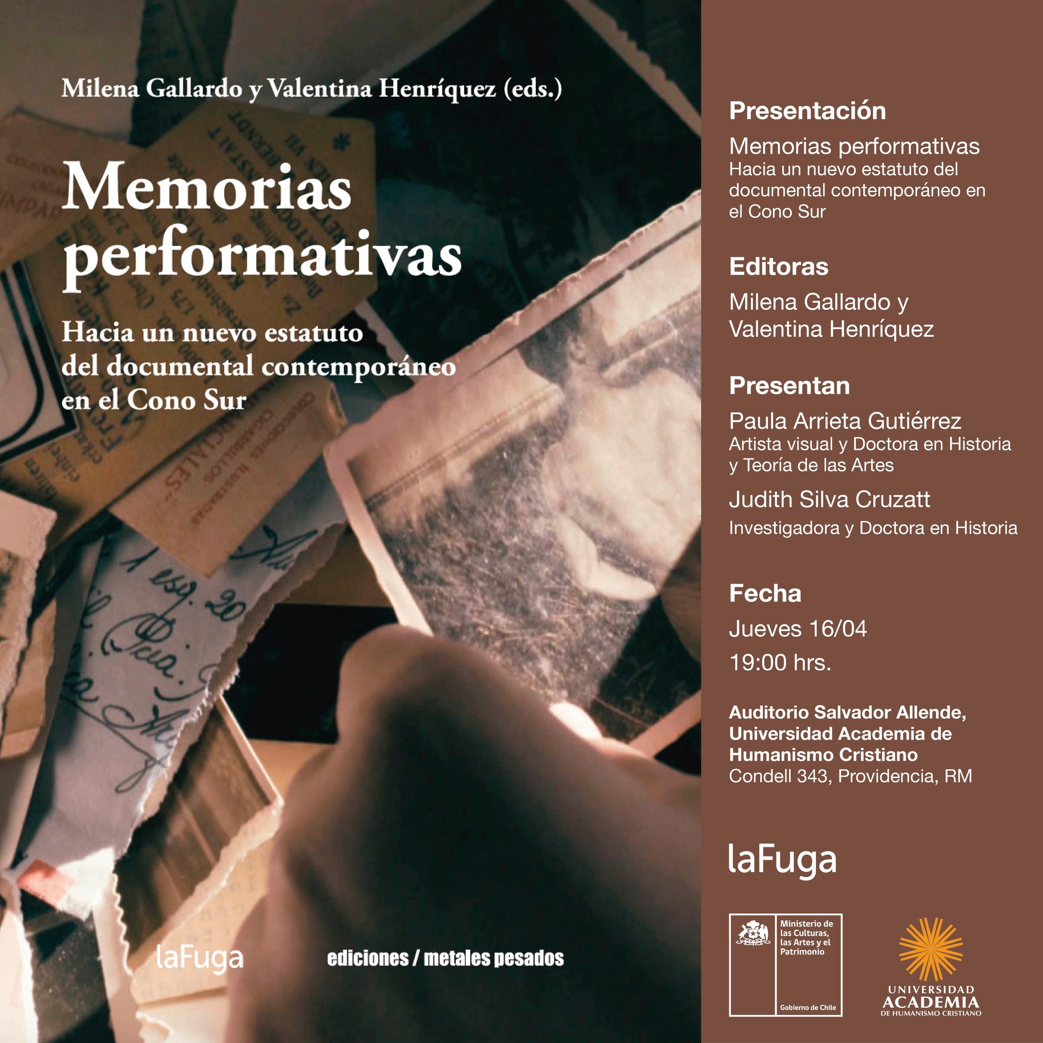 La Facultad de Artes de la Universidad Academia de Humanismo Cristiano tiene el agrado de invitarles al lanzamiento del libro “Memorias performativas. Hacia un nuevo estatuto del documental contemporáneo en el Cono Sur”, una publicación que propone una reflexión crítica sobre las formas contemporáneas de documentar, recordar y producir sentido desde las prácticas artísticas.